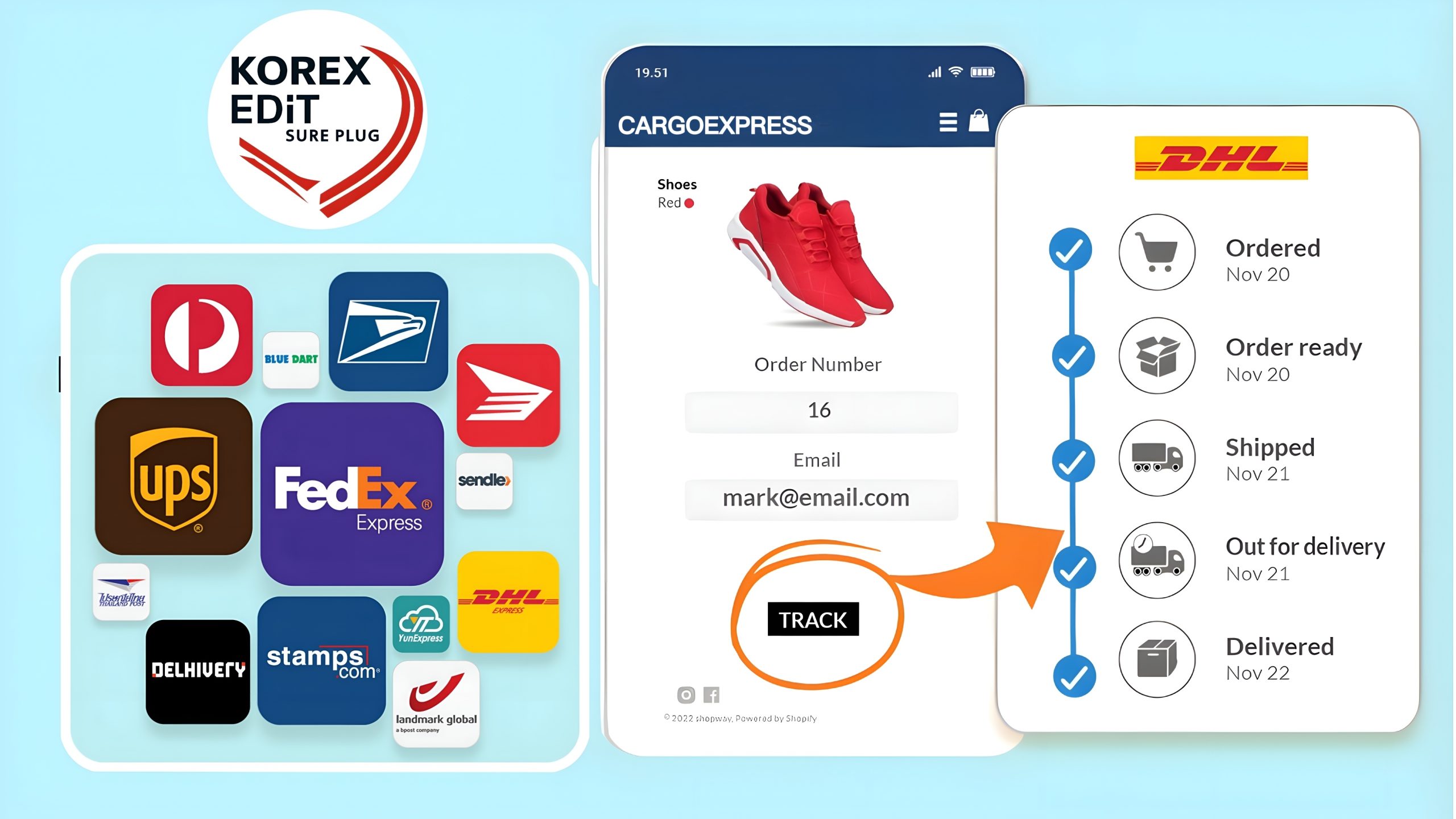 Korex Edit offers Tracking Number for packages that if your clients put the tracking number in the carrier Website They will see the package informations,After Payment for the Package Tracking Number you can put it On, Active, Awaiting,in Transit,On Hold and Delivered For Free.